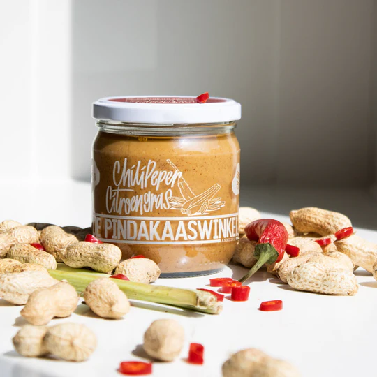 Achtung, Suchtgefahr! Achtung, Suchtgefahr! Die Chili-Zitronengras-Erdnussbutter von De Pindakaaswinkel aus Amsterdam vereint authentische Erdnüsse aus Córdoba, Argentinien mit feuriger Chilischote und frischem Zitronengras – natürlich ohne Palmöl und ohne zusätzlichen Zucker. Der erste Biss startet mit der erfrischenden Zitrusnote des Zitronengrases, wird dann von der cremigen Erdnussbutter getragen und endet in einem würzig-feurigen Finale, das Naschkatzen und Scharfesser gleichermaßen überrascht.